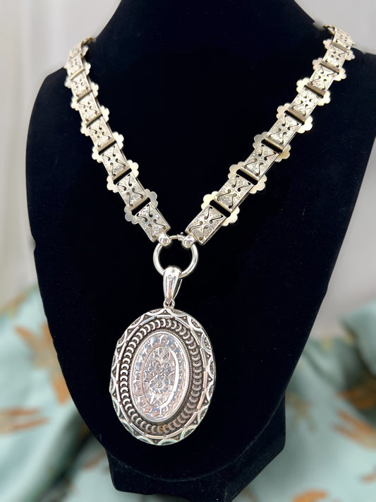 Sold outVictorian silver book chain & locket