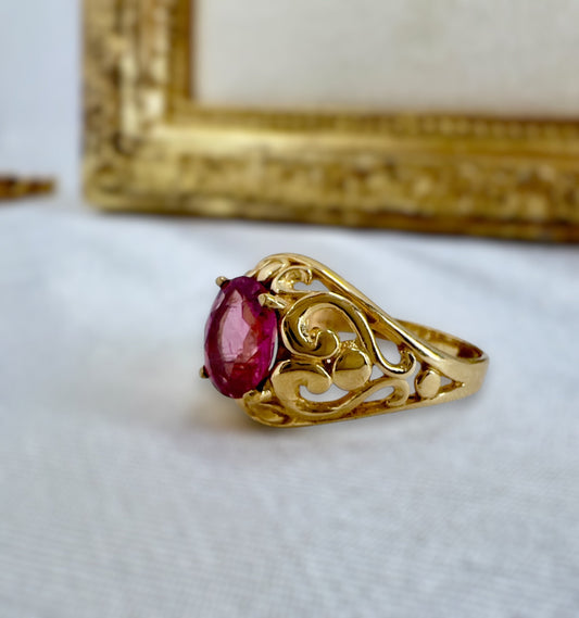Vintage pink tourmaline ring in 10ct gold