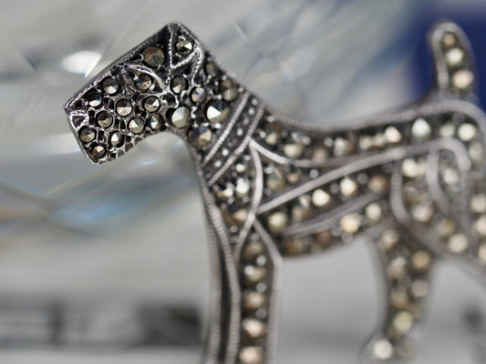 Vintage Lega Silver & Marcasite Dog Brooch