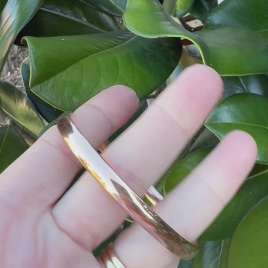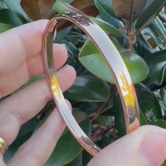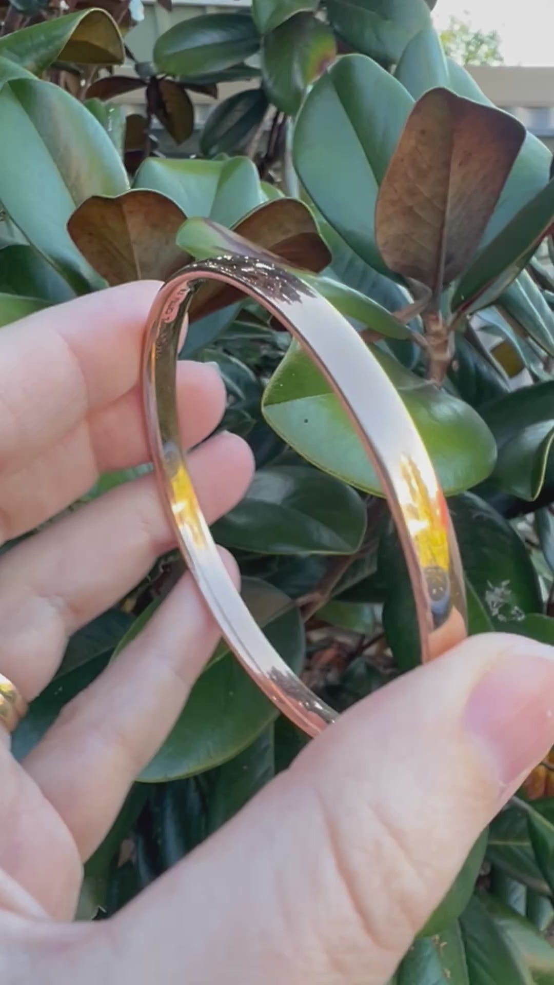 Classic and refined, this beautiful bangle is crafted in 9ct rose gold over a silver-filled core, giving it a radiant finish with a satisfying weight and feel. Its smooth, polished surface and gently rounded profile create a timeless look that complements any style.