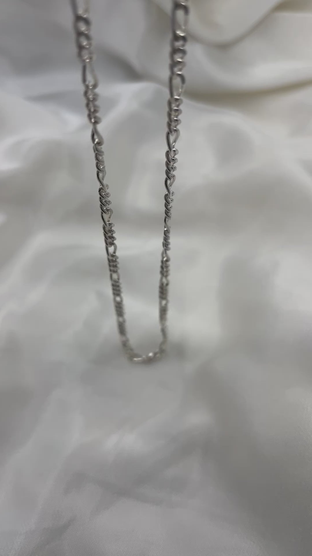 The Figaro chain is a strong chain and works well both with a pendant or alone. It is quite masculine at thicker widths, and elegant at thinner widths.